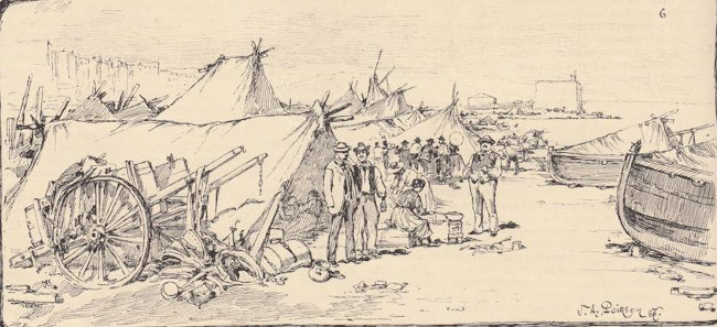 Toute cette population s’installa dans les jardins d’hôtels, sur les places publiques, sur la plage, emmitouflée dans des couvertures, enveloppée dans des toiles de toute sorte. Le moindre abri pour se protéger du froid était recherché, ainsi des personnes s’installèrent sur la plage dans des embarcations recouvertes d’une toile, prêt à affronter une première nuit dans le froid. A cette époque les effets des tsunamis n’étaient pas encore bien connus.