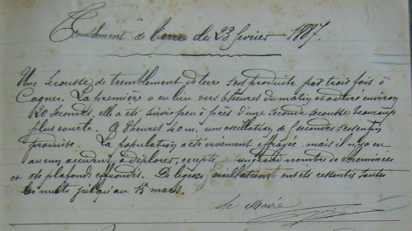 En 712 ans, ce n’est qu’à partir de 1854 que l’on commence à relever des renseignements sur les effets des tremblements de terre à Cagnes-sur-Mer.