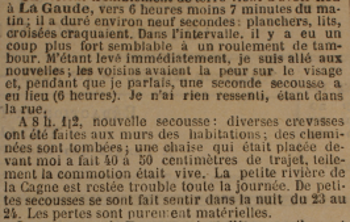 Concernant les événements du siècle dernier, les informations ont été complétées grâce à la banque de données de séismes historiques du site Sisfrance.