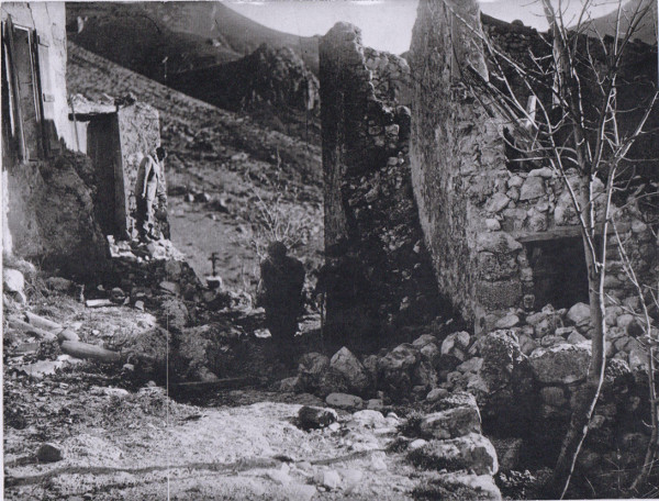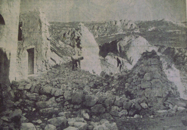 Au cours de l’ascension vers le village, le reporter constate les effets des secousses. "Partout", dit-il, "la terre est fendillée, des blocs de pierre énormes ont roulé de la montagne". [4]