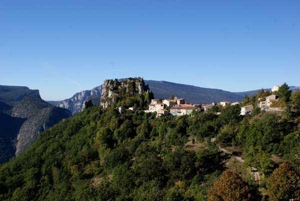 Depuis la route principale des gorges du Verdon, une petite voie étroite et sinueuse permet d’atteindre le village, 2,5 kilomètres plus loin.