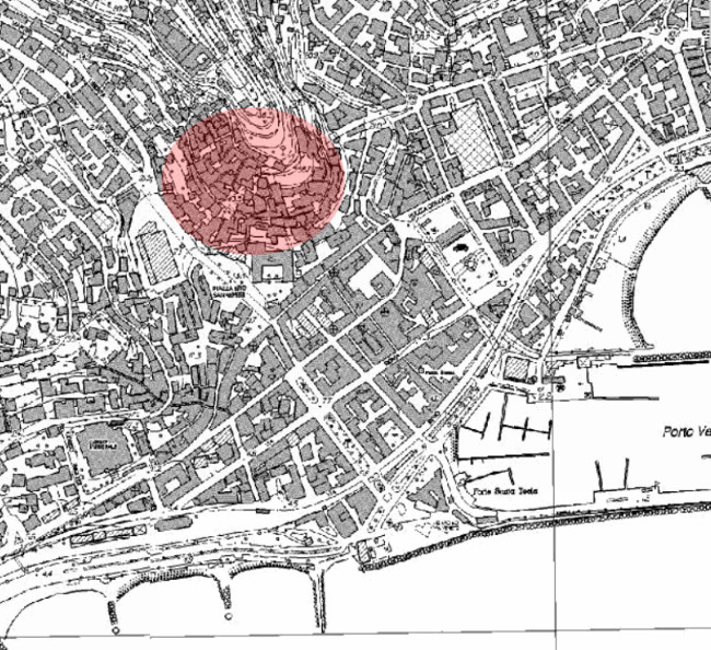 Les maisons effondrées et les dégâts les plus graves se sont produits dans la vieille ville de Sanremo, à gauche du Rio Borgo, située en partie sur le flanc en pente d’une colline constituée de marnes et d’argiles du Pliocène, et en pied de contact avec des roches de l’Éocène en dessous.