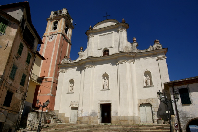 Dans l’église paroissiale, de forme rectangulaire, orientée E-S-E, la partie nord-ouest de la voûte a été ruinée, écrasant deux tirants ; la partie supérieure du clocher s’est également effondrée, tombant en majeure partie vers le Sud sur l’orgue et en partie vers l’Est sur la place. Une fissure presque verticale longe toute la façade vers le milieu observa Mercalli. Dans ce village, on a évité le pire, en effet, au moment du tremblement de terre, plusieurs centaines de personnes étaient rassemblées dans l’église, mais, heureusement, quelques minutes avant le choc, presque toutes étaient sorties pour accompagner une personne décédée au cimetière. Il ne restait que quelques vieillards, dont l’un a été écrasé sous les décombres de la voûte, d’autres blessés. Sans cela, tous les fidèles auraient été ensevelis dans l’église comme à Baiardo ou à Castellaro [1].
