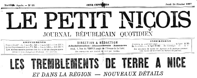 [9] Le Petit Niçois : Extrait du journal du 24 février 1887 - Arch. Départ. des Alpes-Maritimes