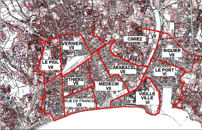 (Document réalisé par André Laurenti à partir du plan de Nice dressé par François Aune - Année 1882 - BNF Gallica)