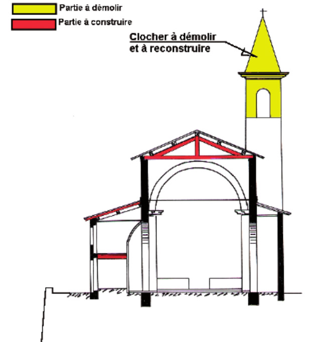 Par la suite, le clocher qui menaçait ruine depuis le tremblement de terre, a été frappé par la foudre le 14 mai 1887 et s’est écroulé avec fracas [6].