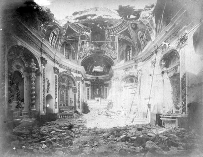 Les murs principaux de l’église sont restés debout et n’ont pas subi de lésions graves, les statues, les stucs et même les chandeliers sont restés en place sur certains autels. Si à la place de cette grande voûte remplie de lourdes pierres, il y eu un plafond en bois bien relié aux murs, personne ne serait mort et peut-être il n’y aurait pas eu de blessé, écrira Mercalli.