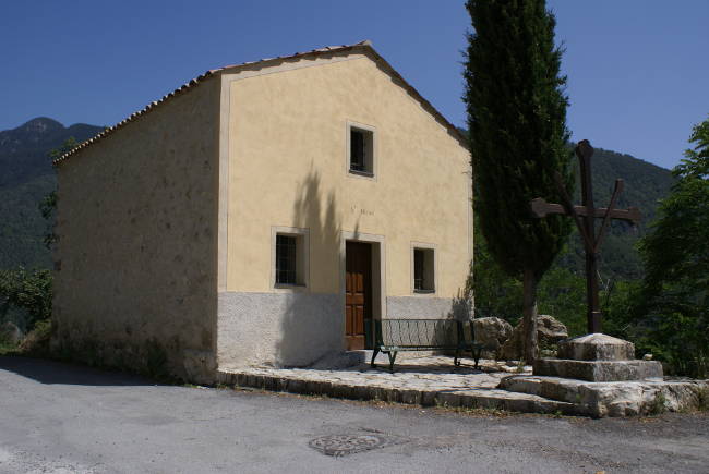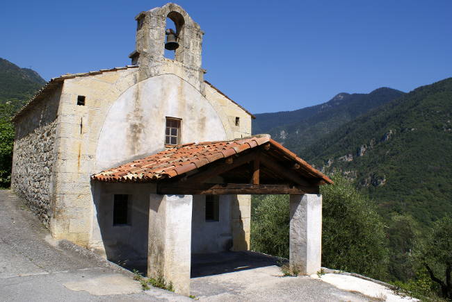 Elle se situe avant l’arrivée au village, proche de la mairie. Elle a été édifiée pour protéger le village de la peste de 1467 et placée à la rencontre des vieux chemins muletiers qui menaient l’un à Nice, l’autre à la Provence. Le petit porche qui la précède a été ajouté vers 1890. [8]