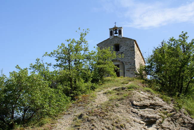 Elle se situe sur la route de la forêt à l’est du village. Son chevet a été peint par Andrea da Cella vers 1515. L’édifice a été classé à l’inventaire des monuments historiques en même temps que la Collégiale, le 3 janvier 2000.