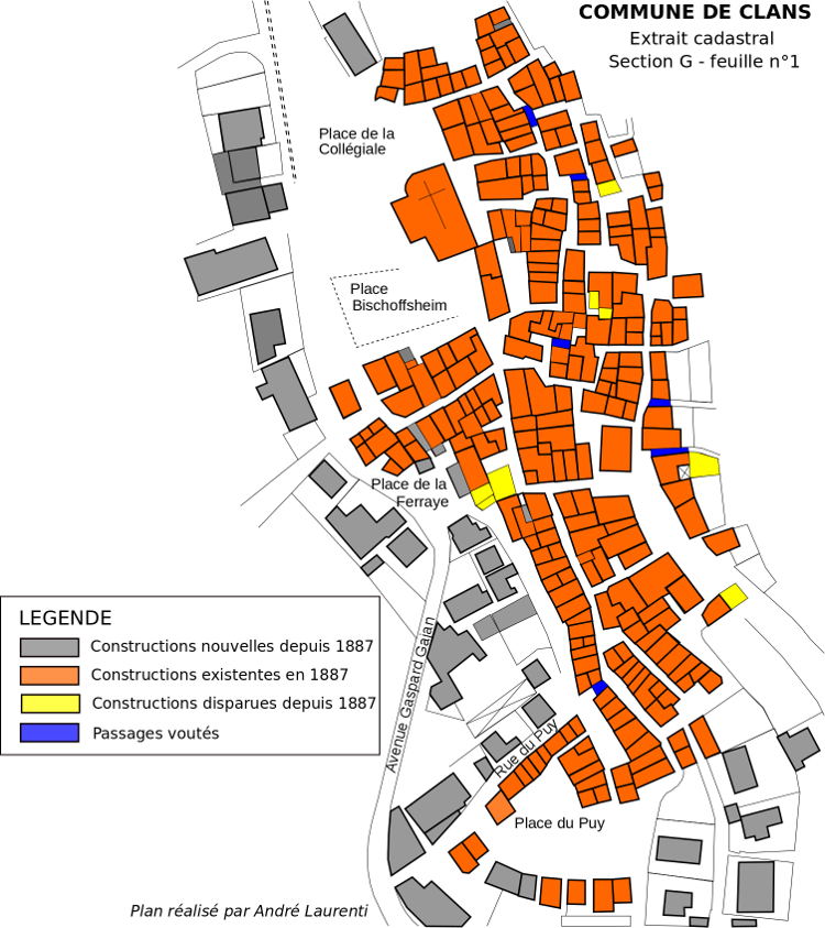 La commune de Clans située dans le territoire du Comté de Nice, a été rattachée à la France en 1860, le cadastre est donc plus tardif et date de 1867, il reflète au mieux l’état du bâti au moment du séisme et servira de base pour localiser les effets du tremblement de terre.