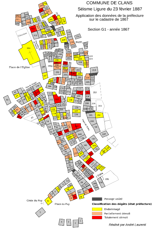 En revanche, c’est finalement le séisme ligure du 23 février 1887 qui fournit le plus de détails sur d’importants dommages relevés sur la commune de Clans.