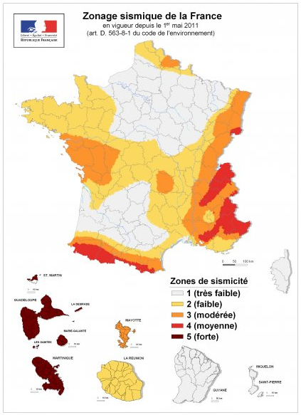 Ainsi, depuis le 1er mai 2011, la France s’est dotée d’une nouvelle carte de zonage sismique qui fixe les règles en matière de construction dans les zones à risques. Harmonisées avec celles de l’Union européenne, ces règles introduisent un zonage plus précis à l’échelle communale que la précédente version de 2005.