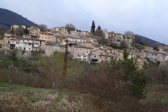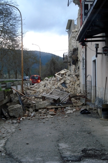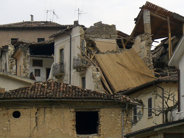 Rocca di Cambio (447 habitants) situé à 1 433 m d’altitude, ici 180 habitants ont été évacués. Toutes les maisons sont lézardées gravement, même celles restaurées récemment.