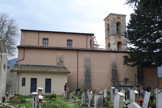 Castelvecchio Subequo (1242 habitants) à 490 m d’altitude le centre historique est totalement inhabitable. Il y a des dégâts au couvent di San Francesco ou le campanile a subi une torsion et menace de tomber.