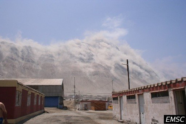 Dans un environnement montagnard aux reliefs prononcés, les éboulements provoqués par un séisme sont nombreux et vont dégager des nuages de poussière qui peuvent stagner plusieurs heures avant de se dissiper. Dans le cas ou l’épicentre est très proche comme ce fut le cas ici, les effets peuvent être spectaculaires.