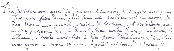 [8] Gio Francesco Blancardi di Sospello - récit relatif au séisme de 1564 en haute Vésubie, trouvé dans la chronique La Citta di Nizza - Archives municipales de Nice