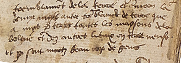 – Le 20 de juillet post ave grand vent par tremblement de la terre et environ la demye nuyt autre tremblement de la terre que a mys par terre toutes les maysons de la Bollène et dez autres lieux en terre neuve et y sont mortz beaucoup de gens [7] (jeudi 20 juillet).